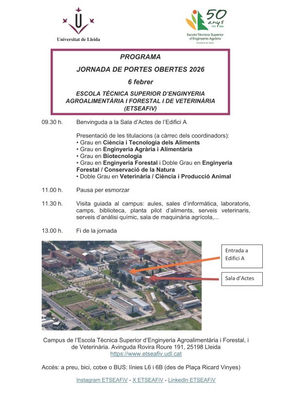 - Escola Tècnica Superior d’Enginyeria Agroalimentària i Forestal i de Veterinària (ETSEAFiV)