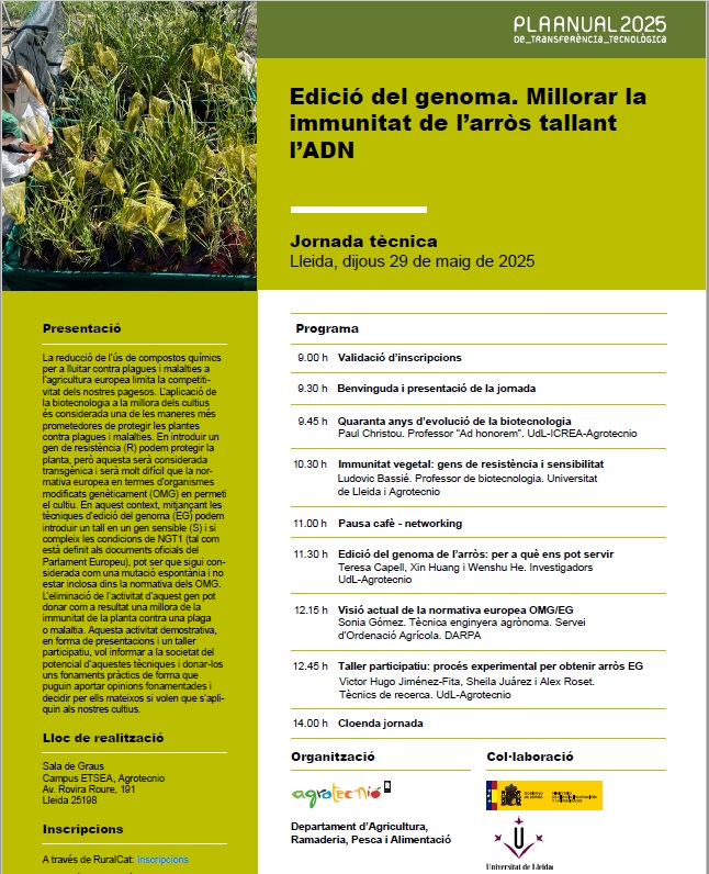 Jornada tècnica Edició del genoma. Millorar la immunitat de l'arròs tallant l'ADN